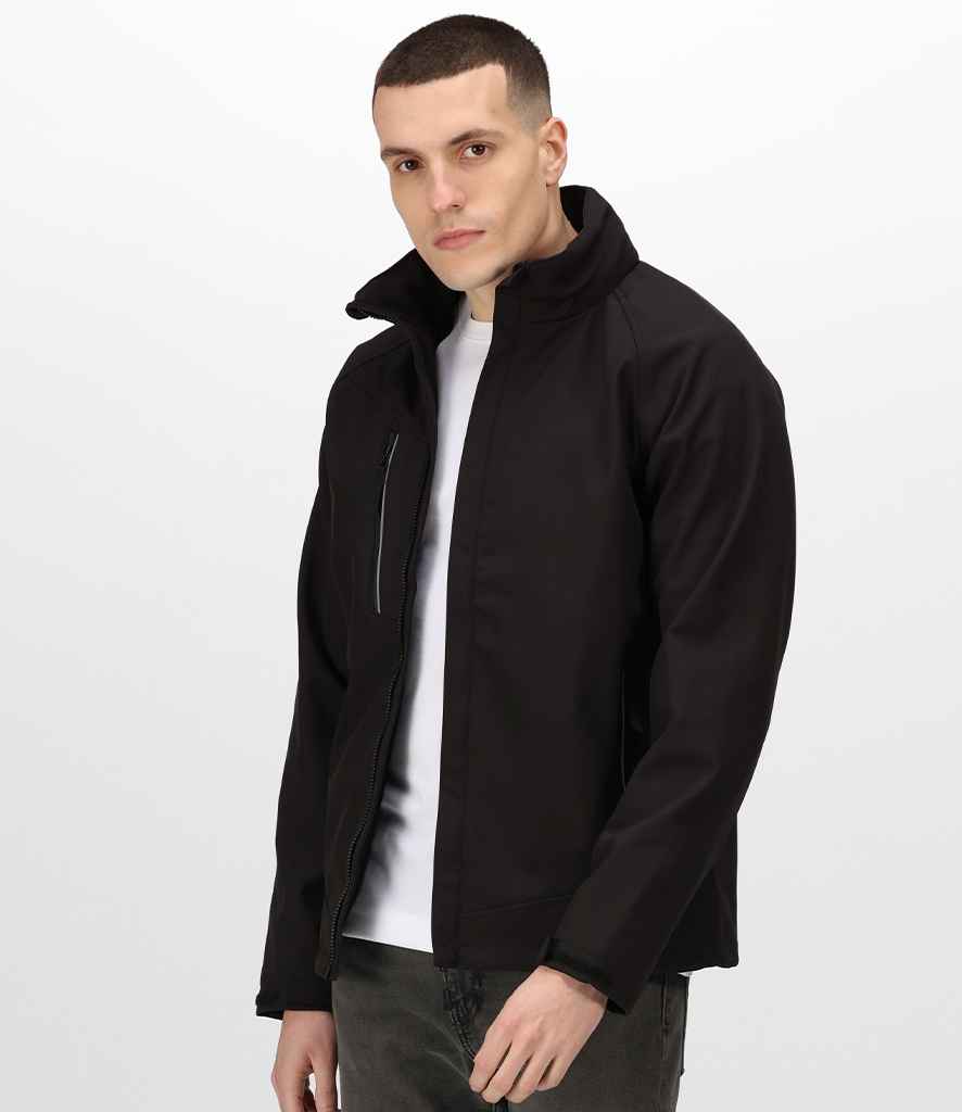 • Warm backed stretch soft shell fabric has a 96% polyester/4% elastane outer.